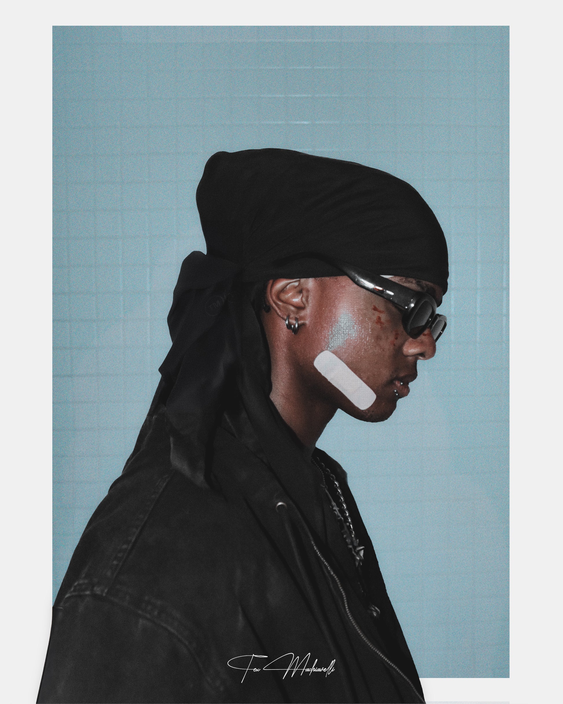 A drape of ungoverned intention. Cut from 100% pure silk — fluid, weightless, and quietly confrontational. The square shape recalls discipline, yet its fall is entirely anarchic. Designed to move like smoke and resist definition: worn as armor, veil, or gesture. Frayed whispers at the edge remind you that perfection is a myth. Monochrome minimalism as rebellion. Silence as luxury