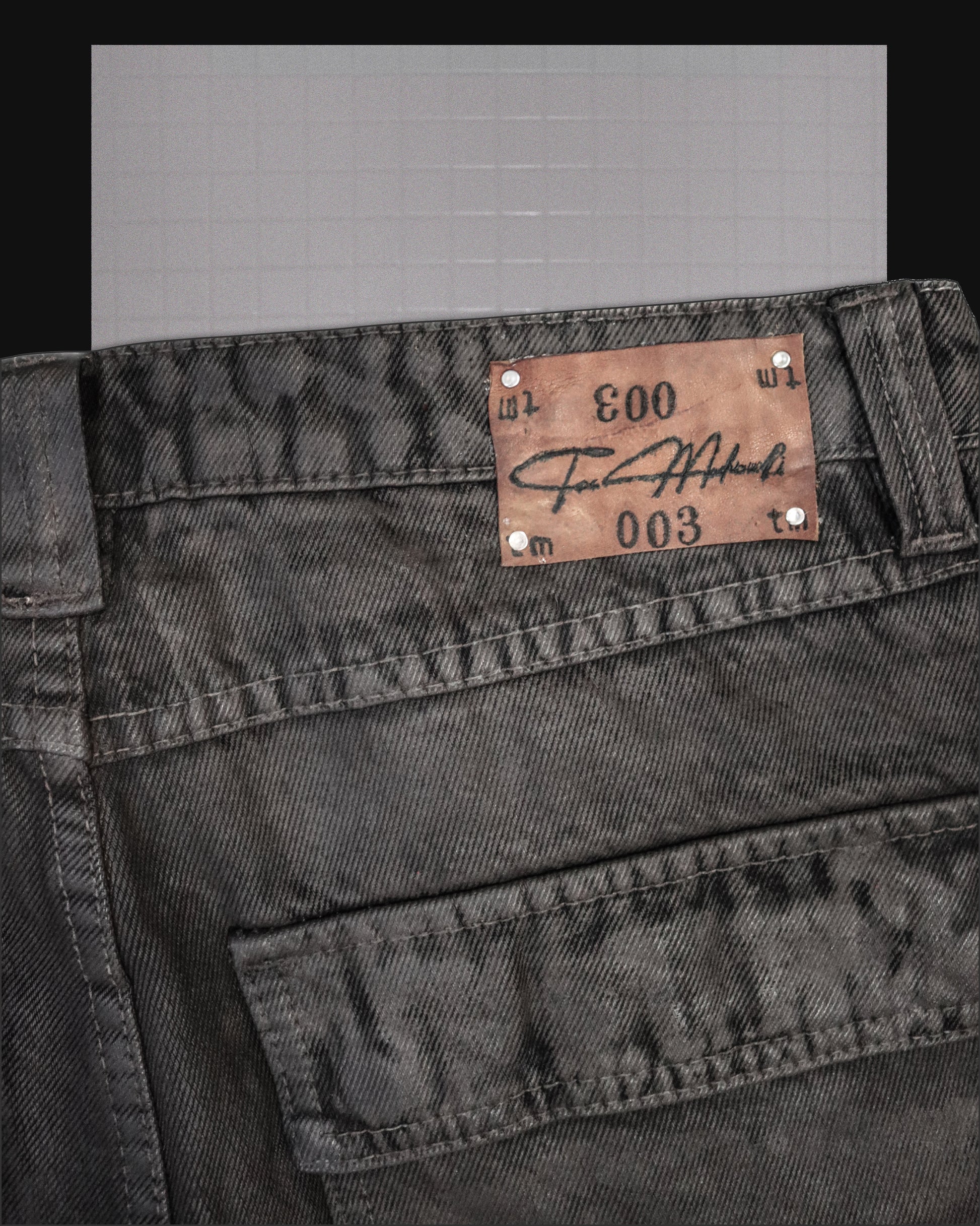 MARKINGS: TATTOOED LEATHER TAG — RIVETED
